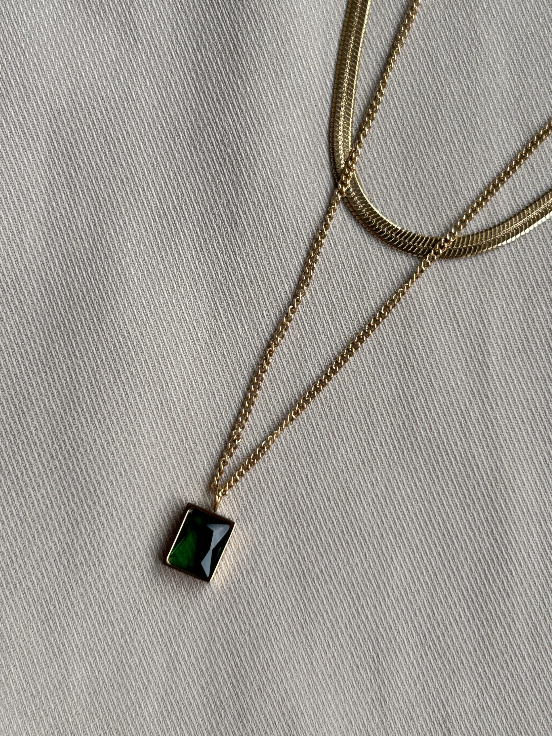 Pendant Shape: Square-cut green gemstone